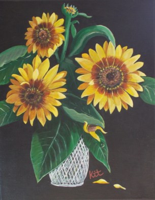 For those in lockdown, art has proved a comfort. Many people and children taking up the hobby for the first time. My painting has certainly helped keep me going, although my “Sunflowers” was painted a couple of summer’s ago, inspired by those growing in my garden that year.